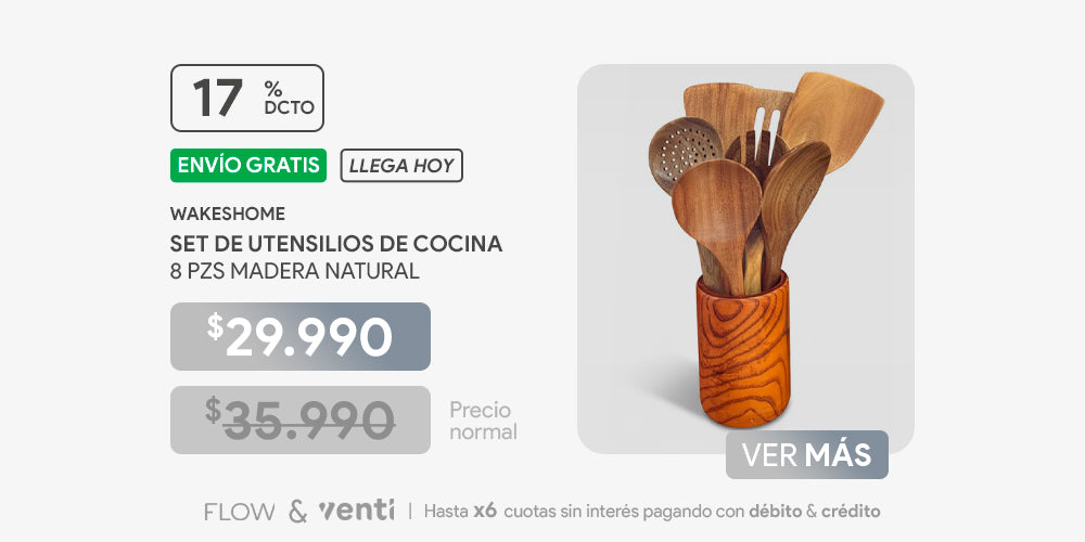 Set de Utensilios de Cocina 8 pzs Madera Natural