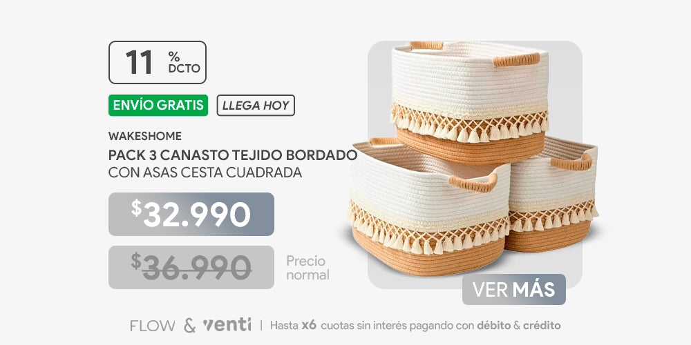 Pack 3 Canasto Tejido Bordado con Asas Cesta Cuadrada para Organizar