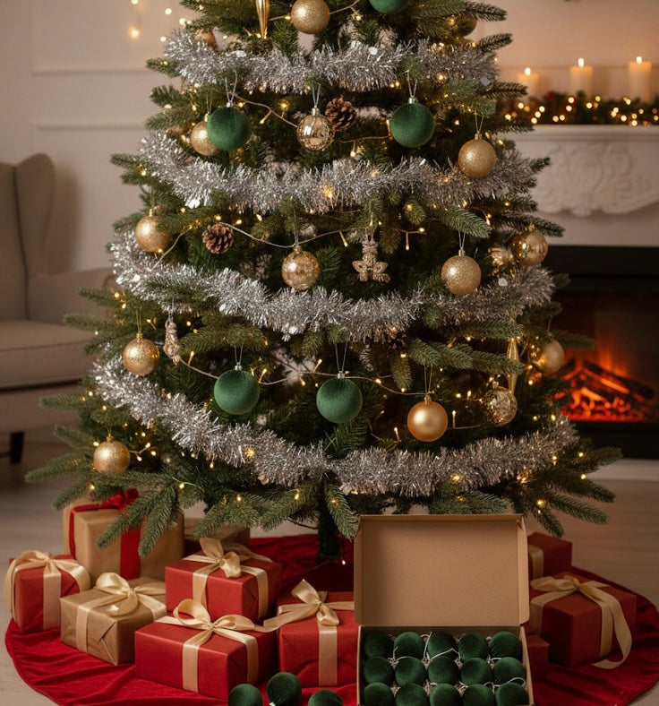 ° El terciopelo envuelve las bolas de Navidad, y el terciopelo superior cuenta con pliegues que añaden encanto a tu árbol de Navidad.