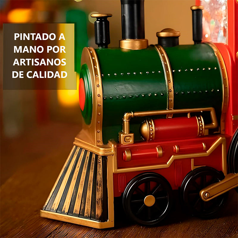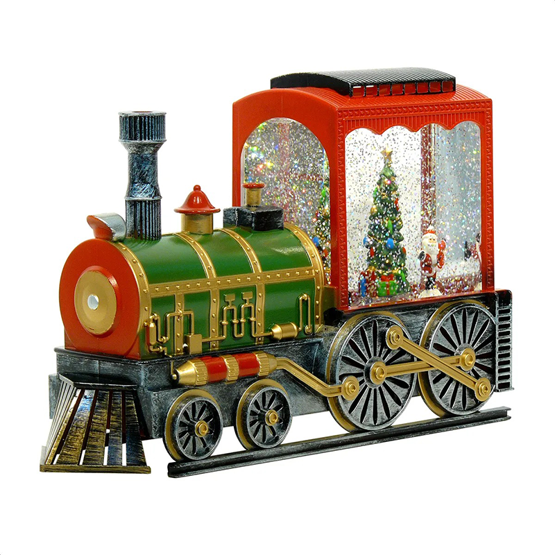 Transforma tu decoración navideña con esta encantadora linterna de globo de nieve de Navidad con una encantadora escena de tren y muñeco de nieve.
