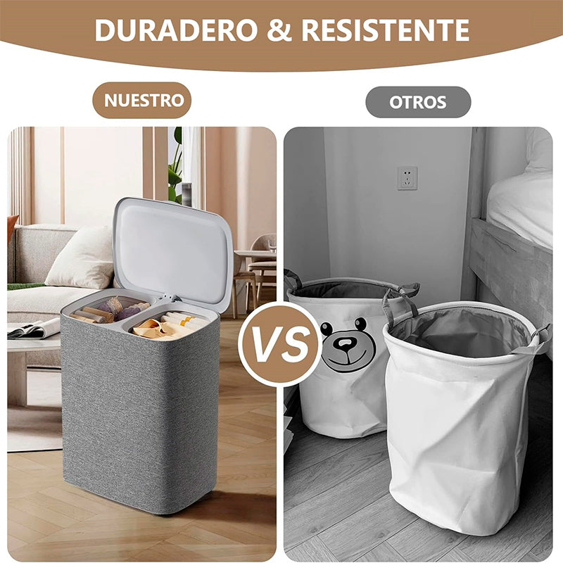 Este cesto para ropa de 2 piezas cuenta con dos compartimentos para separar la ropa por color, tela o miembro de la familia, ideal para hogares con mucha actividad. Mantenga la ropa ordenada fácilmente con los separadores extraíbles etiquetados.