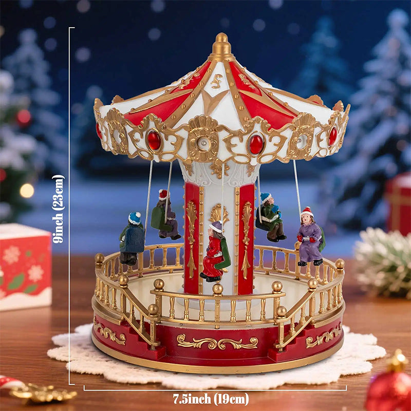 - Hecho a mano y animado: este carrusel musical de Navidad está intrincadamente pintado a mano por expertos artesanos. Cuatro figuras de niños se mueven hacia arriba y hacia abajo mientras el carrusel gira, brillando con luces LED coloridas y una encantadora pantalla musical que crea un ambiente festivo.