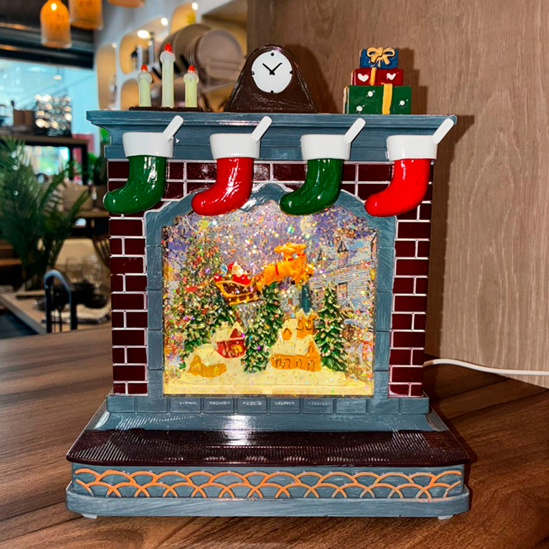 En su interior, una escena invernal cobra vida con luz y brillo, trayendo un toque de cuento de hadas a cualquier espacio. Perfecta para tu sala, comedor o incluso la habitación de los niños, esta chimenea transformará tu casa en un verdadero refugio festivo.¡Un regalo ideal y una pieza central que encantará a todos!