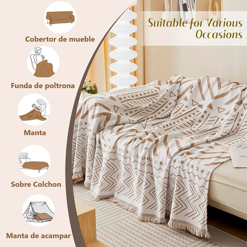 Su tamaño 180×230 cm la hace perfecta para usar sobre el sofá, la cama o como complemento decorativo que aporta equilibrio y serenidad.