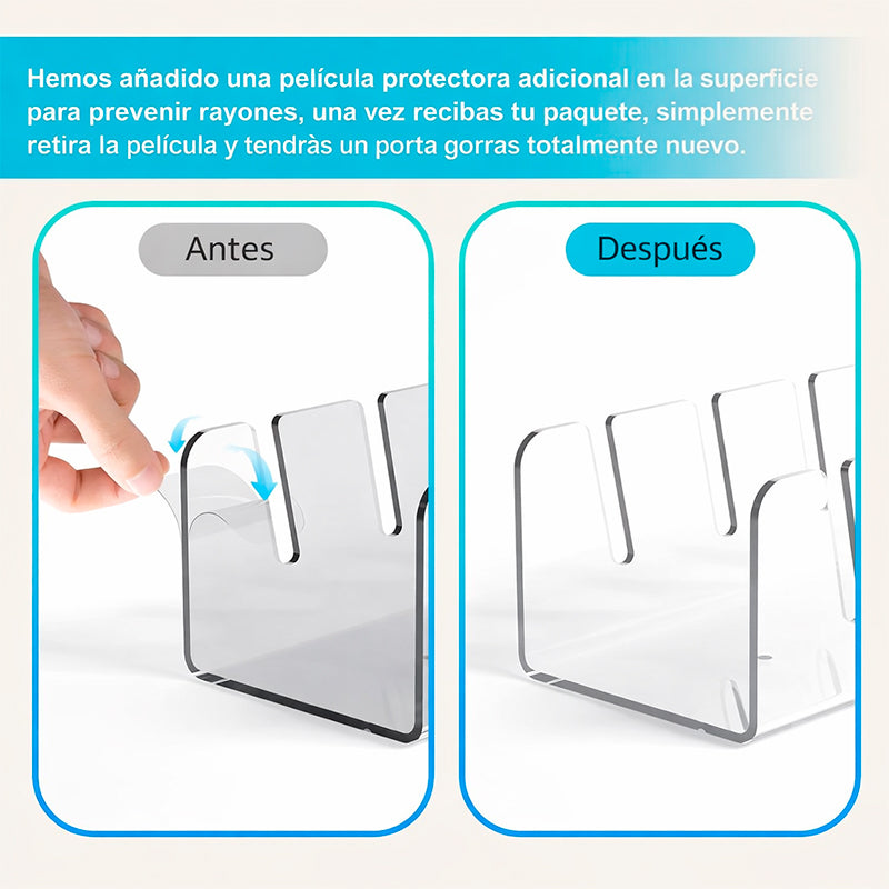 Perchero y soporte para sombreros de alta calidad: hecho de acrílico de alta calidad, este soporte para sombreros es resistente y duradero, manteniendo tus sombreros seguros y organizados.