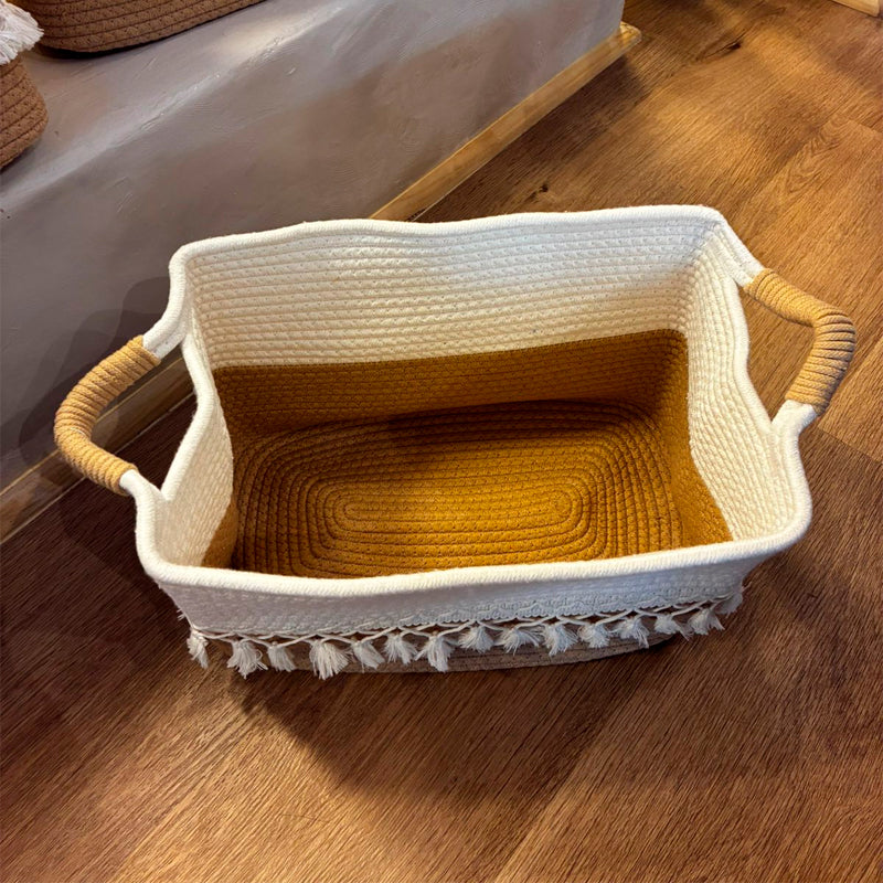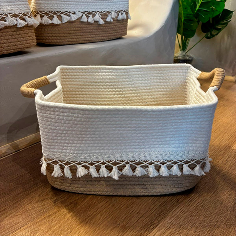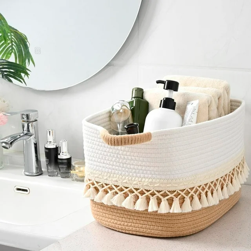Material: algodón. La canasta está hecha de cuerda de algodón, que es adecuada para el uso doméstico, especialmente para los bebés y los niños. A diferencia de las canastas de mimbre o ratán, la canasta blanda no daña las manos ni la piel, y es duradera en su uso