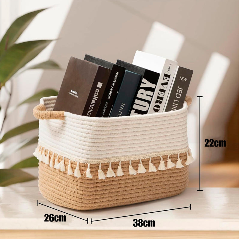 Canasta multiusos grande: la canasta de cuerda tiene unas dimensiones de 22 de alto x 38cm de ancho, que son perfectas para guardar ropa, juguetes de peluche, mantas para bebé, toallas o cualquier artículo de bebé en la habitación de los niños. También es ideal para guardar almohadas, edredones o cojines en el dormitorio y la sala de estar.