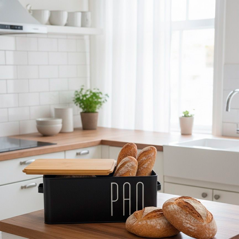 Almacenamiento práctico: Panera ofrece suficiente espacio de almacenamiento para mantener el pan, las galletas y todos los productos horneados secos y durante mucho tiempo. También se pueden guardar patatas, ajos y cebollas: ideal para conservar alimentos a diario.