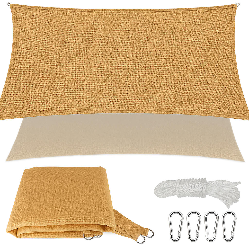 Tela de alta calidad: nuestras velas de sombra están hechas de tela poliéster de alta resistencia, que es permeable y transpirable, y todos los bordes están construidos con costuras cosidas reforzadas de doble capa para evitar la deshielo y la deformación.