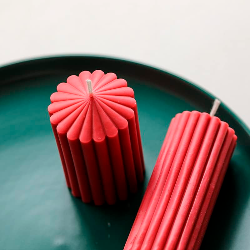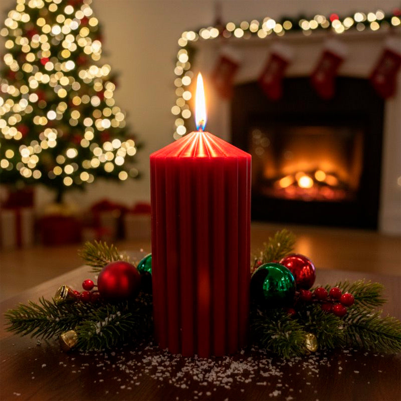 - Diseño Único y Sofisticado: La cera roja profunda y su elegante patrón estriado (acanalado) convierten esta vela en una pieza decorativa por sí misma. Es el acento perfecto para tu sala, mesa de noche o como centro de mesa festivo.
